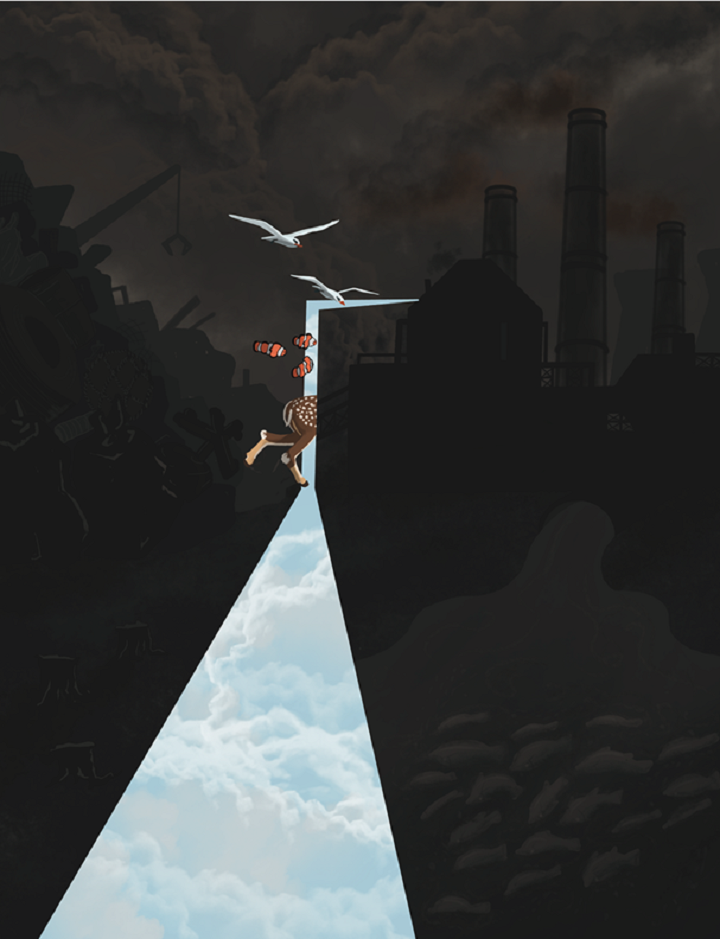 ƯÈ÷ '¹®ÀÌ °ð ´ÝÈü´Ï´Ù' ´Â °ø¸ðÀü ¼ö»óÀÛÀº ¿ì¸®ÀÇ ¹«ºÐº°ÇÑ °³¹ß°ú ¿À¿°À¸·Î ÀÎÇÏ¿© ±ú²ýÇß´ø ÇÏ´Ã, ¹Ù´Ù, ½£, µ¿¹°ÀÌ »ç¶óÁ® °¡´Â »óȲÀ» '¹®'À¸·Î Âü½ÅÇÏ°Ô Ç¥ÇöÇÑ ÀÛǰÀÌ Àλó ±í°Ô ³²¾Ò´Ù°í ÀüÇß´Ù.
