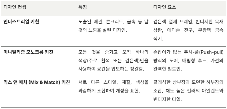 °á±¹ ºÎ¾ýÀº ½ÄÀç·á¸¦ ´Ù·ç°í À½½ÄÀ» ¸¸µå´Â º»¿¬ÀÇ °¡Ä¡¸¦ ÁöŰ¸é¼µµ, ²÷ÀÓ¾øÀÌ ½Ã´ëÀÇ ¶óÀÌÇÁ½ºÅ¸ÀÏÀ» ´ã¾Æ³»´Â ±×¸©À¸·Î ÁøÈÇØ ¿Ô´Ù. 19¼¼±â ¸»ÀÇ Ã¶ÀúÇÑ 'È¿À²¼º'¿¡¼ Ãâ¹ßÇÏ¿© '°¡Á· °£ÀÇ ¼ÒÅë'À» Áß½ÃÇÏ´Â °³¹æÇü ±¸Á¶¸¦ °ÅÃÄ, ÀÌÁ¦´Â '÷´Ü ±â¼úÀ» Ȱ¿ëÇÑ Æí¸®ÇÔ'°ú '°³ÀÎÀÇ ÃëÇâÀ» Ç¥ÇöÇÏ´Â ½É¹Ì¼º'À» µ¿½Ã¿¡ Ãß±¸ÇÏ´Â º¹ÇÕÀûÀÎ °ø°£ÀÌ µÇ¾ú´Ù. Çö´ëÀÇ ºÎ¾ý µðÀÚÀÎÀº ´Ü¼øÇÑ ±â´ÉÀûÀÎ ÇØ°áÃ¥À» ³Ñ¾î, »ç¿ëÀÚÀÇ ´Ùä·Î¿î Çൿ ¸Æ¶ô°ú »îÀÇ Ã¶ÇÐÀ» °í½º¶õÈ÷ ´ã¾Æ³»´Â '»îÀÇ Á᫐ °ø°£'À¸·Î¼ ±× º¯Ä¡ ¾Ê´Â Àǹ̸¦ ´õ¿í È®°íÈ÷ Çϰí ÀÖ´Ù.