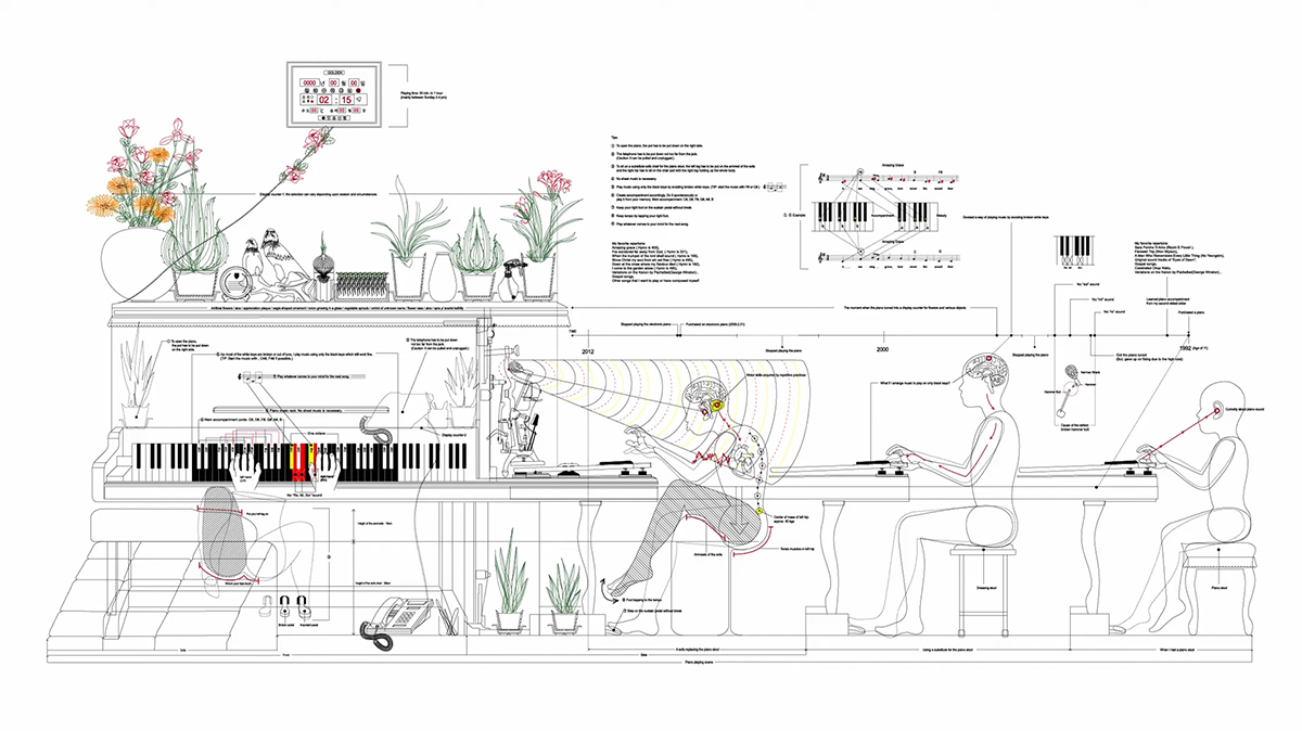 ÀÛ°¡ÀÇ °³ÀÎÀûÀÎ Ãß¾ïÀº ÀÛǰ ¡®¸Þ´º¾ó1_³ªÀÇ ÇǾƳ븦 »ç¿ëÇÏ´Â ¹æ¹ý(Manual No.1 How to Play the Piano, 2012)¡¯¿¡¼µµ Àß µå·¯³´Ù. Áß°í·Î ±¸¸ÅÇØ 20³â µ¿¾È »ç¿ëÇØ ¿Â °ñµ¿Ç° °°Àº ÇǾƳë´Â ÀÛ°¡ÀÇ ½Ã°£°ú Ãß¾ïÀÌ ´ã°Ü ÀÖ´Ù. ÇǾƳëÀÇ Èò °Ç¹Ý Áß ·¹, ¹Ì, ¼ÖÀÌ ¼Ò¸®°¡ ³ªÁö ¾Ê¾Æ, ÇØ´ç °Ç¹ÝÀ» ÇÇÇØ ÀÚ¿¬½º·´°Ô ¿¬ÁÖÇϱâ À§ÇÑ ÀÛ°¡¸¸ÀÇ ³ëÇϿ찡 ¼¶¼¼ÇÏ°Ô ±â·ÏµÇ¾î ÀÖ´Ù. ¶ÇÇÑ ÇǾƳ븦 ¿¬ÁÖÇϱâ À§Çؼ´Â ÇǾƳë À§¿¡ ¿Ã·ÁÁø ¹°°ÇµéÀ» ¸ÕÀú Ä¡¿ö¾ß Çϰí, ÇǾƳë ÀÇÀÚ¸¦ ³õÀ» °ø°£ÀÌ ¾ø¾î ¼ÒÆÄÀÇ ÆÈ°ÉÀÌ¿¡ ¾É¾Æ ¿¬ÁÖÇÏ´Â ¸ð½À±îÁö ´ã¾Æ³Â´Ù.