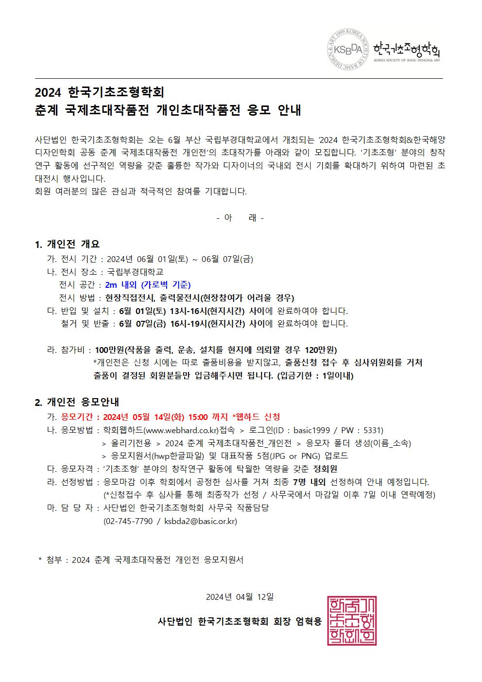 2024 Çѱ¹±âÃÊÁ¶ÇüÇÐȸ Ãá°è ±¹Á¦ÃÊ´ëÀÛǰÀü °³ÀÎÀü ÀÀ¸ð ¾È³»