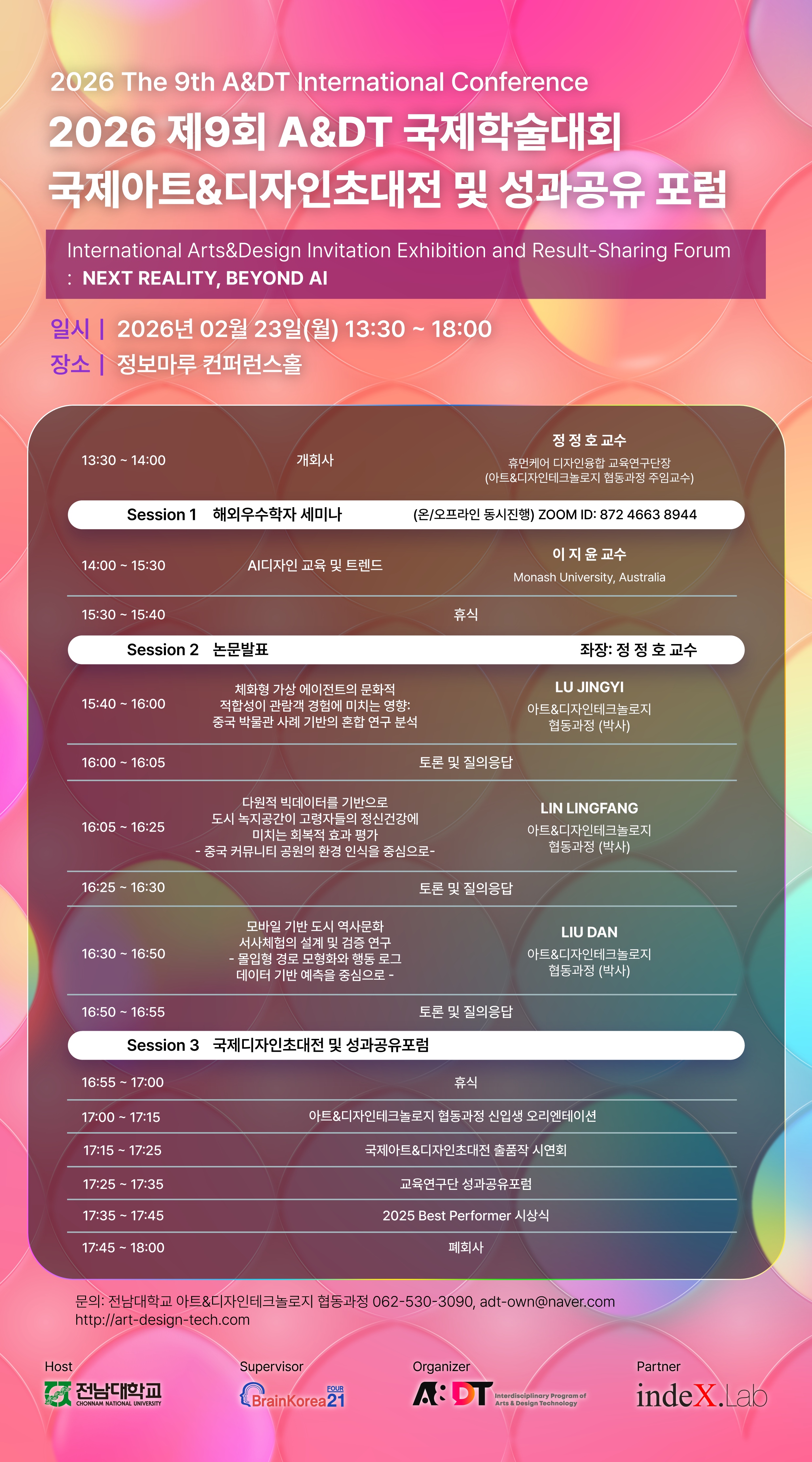 ¼ºñ½ºµðÀÚÀÎÀ¶ÇÕ¿¬±¸¼Ò°¡ ÇùÁ¶ÇÏ¿© ÁøÇàÇÏ´Â '2026 Á¦9ȸ A&DT ±¹Á¦Çмú´ëȸ/±¹Á¦¾ÆÆ®&µðÀÚÀÎÃÊ´ëÀü ¹× ¼º°ú°øÀ¯ Æ÷·³'À» °³ÃÖÇÕ´Ï´Ù.