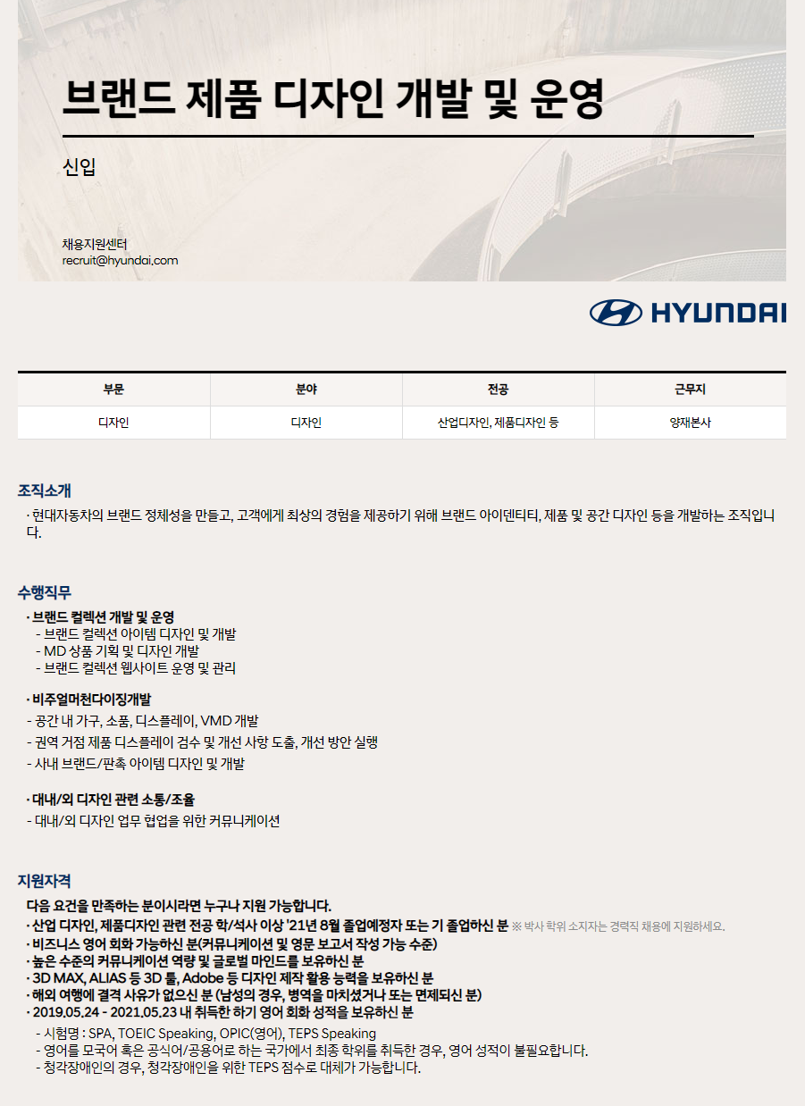 Çö´ëÀÚµ¿Â÷ ºê·£µå Á¦Ç° µðÀÚÀÎ °³¹ß ¹× ¿î¿µ Á÷¿ø ¸ðÁý