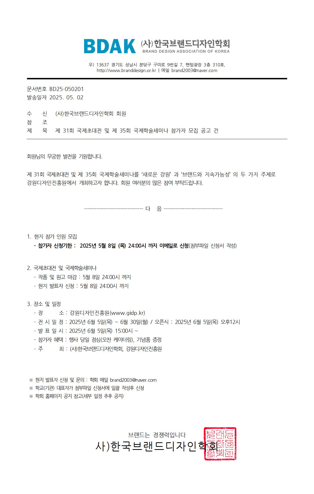 Á¦ 31ȸ ±¹Á¦ÃÊ´ëÀü ¹× Á¦ 35ȸ ±¹Á¦Çмú¼¼¹Ì³ª Âü°¡ÀÚ ¸ðÁý °ø°í