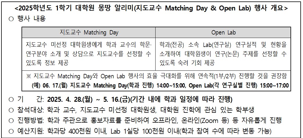 ºÙÀÓ 1. 2025Çг⵵ 1Çб⠴ëÇпø ¸ù¶¥ ¾Ë¸®¹Ì(Áöµµ±³¼ö Matching Day & Open Lab) Çà»ç °èȹ(¾È)