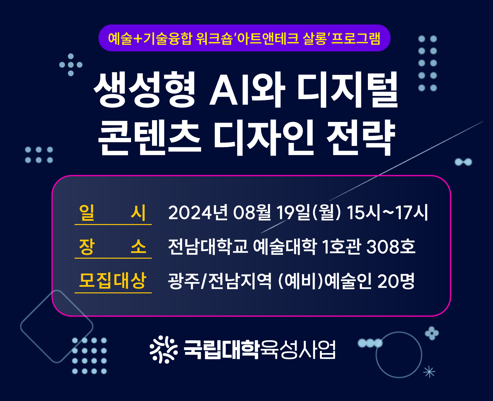 ±¹¸³´ëÇÐÀ°¼º»ç¾÷ ÀÏȯÀ¸·Î Àü³²´ëÇб³ ¼ºñ½ºµðÀÚÀÎÀ¶ÇÕ¿¬±¸¼Ò°¡ ÁÖÃÖ¡¤ÁÖ°üÇÏ´Â ¾ÆÆ®¾ØÅ×Å© »ì·Õ ÇÁ·Î±×·¥À» °³ÃÖÇÕ´Ï´Ù.