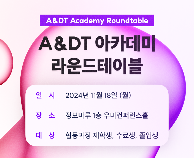 Àü³²´ëÇб³ BK21 ÈÞ¸ÕÄɾî Áö´ÉÇü ¹®È¿¹¼úÄÜÅÙÃ÷ÀÇ µðÀÚÀÎÀ¶ÇÕÀÎÀç ¾ç¼º ±³À°¿¬±¸´Ü(¾ÆÆ®&µðÀÚÀÎÅ×Å©³î·ÎÁö Çùµ¿°úÁ¤) ¹× ¼ºñ½ºµðÀÚÀÎÀ¶ÇÕ¿¬±¸¼Ò °øµ¿ ÁÖÃÖ/ÁÖ°üÀ¸·Î¡ºA&DT ¾ÆÄ«µ¥¹Ì ¶ó¿îµåÅ×ÀÌºí¡»À» ÁøÇàÇÕ´Ï´Ù. ÇлýµéÀÇ ¸¹Àº Âü¿© ºÎʵ右´Ï´Ù.