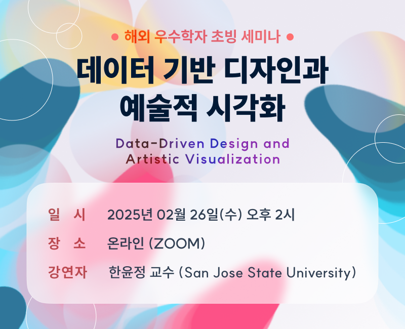 ¡®µ¥ÀÌÅÍ ±â¹Ý µðÀÚÀΰú ¿¹¼úÀû ½Ã°¢È'¶ó´Â ÁÖÁ¦·Î °³ÃÖÇÏ´Â À̹ø ¼¼¹Ì³ª¿¡ ¸¹Àº °ü½É°ú Âü¿© ¹Ù¶ø´Ï´Ù.