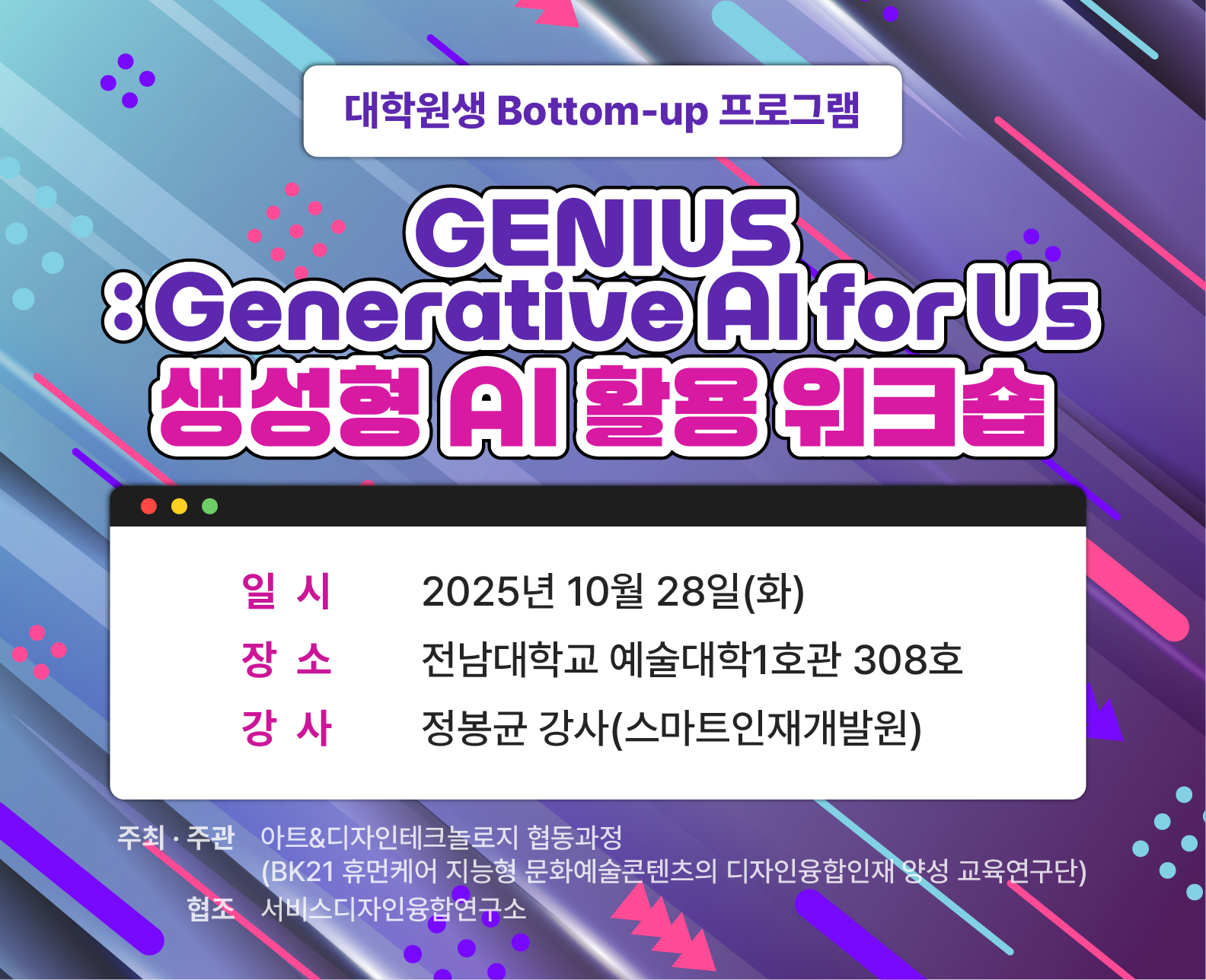 ¡®GENIUS : Generative AI for Us – »ý¼ºÇü AI Ȱ¿ë ¿öÅ©¼ó¡¯À» °³ÃÖÇÕ´Ï´Ù.