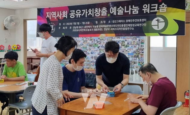 Àü³²´ë µðÀÚÀÎ ±³À°¿¬±¸´Ü(´ÜÀå µðÀÚÀÎÇаú Á¤Á¤È£ ±³¼ö)Àº À̳¯ºÎÅÍ ÇÑ ´Þ µ¿¾È ÁÖ 1ȸ ¼º»ê ÀÌ ¼¾Å͸¦ ÀÌ¿ëÇÏ´Â Àå¾ÖÀε鿡°Ô ¡®Áö¿ª»çȸ °øÀ¯°¡Ä¡ âÃâ ¿¹¼ú³ª´® ¿öÅ©¼ó¡¯À» ÅëÇØ Àڱ⠼ºÀåÀÇ ±âȸ¸¦ Á¦°øÇϰí, »çȸÀû °ü°è ±¸ÃàÀ» µµ¿ï »Ó¸¸ ¾Æ´Ï¶ó ´Ù¾çÇÑ »óȲ°ú °æÇè¿¡ ´ëÇÑ ÀÌÇØ·ÂÀ» ³ô¿©ÁÖ´Â ±³À°ÇÁ·Î±×·¥À» ¿î¿µÇÑ´Ù.